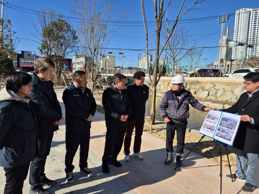 포항시의회 건설도시위원회(위원장 김철수)는 3일 오전 소관부서 주요 사업 점검을 위해 △학산천 생태하천 복원 사업지와 △학산공원 인근 통학로에 대한 현장 방문을 실시했습니다. △학산천 생태하천 복원 공사는 우현도시숲, 중앙동 행정복지센터, 동빈내항까지의 총 길이 0.9km, 폭 17~23m 구간의 하천 생태를 복원해 수생태계를 회복하고 친환경공간을 확보해 주민의 삶의 질을 향상시키는 사업입니다. 당초 예정된 준공 시기는 2023년 12월이었지만, 수차례 공사가 연장된 끝에 오는 12월 8일 물길맞이 행사를 앞두고, 사업의 마무리를 점검하기 위해 현장을 방문했습니다. 이어 지난 2022년 11월 착공해 2026년 5월 1,455가구의 입주가 예정된 △학산공원 민간공원 특례사업지를 방문해 인근 통학로 점검에 나섰습니다. 공원 인근에 항도초등학교, 포항중학교 등 4개 학교가 위치함에도 통학로가 좁아 학생들의 안전 우려가 지속적으로 제기돼 왔으며 내년도 아파트 입주 후에는 그 문제가 더욱 심각해질 것으로 보입니다. 이날 위원들은 각 현장을 방문해 사업계획, 사업현황에 대한 보고를 받고 사업추진에 따른 문제점과 대책, 안전하고 효율적인 사업 진행을 위한 개선방향에 대해 논의했습니다. 김철수 건설도시위원장은 “현장점검을 통해 파악된 당면 현안사항에 대한 개선 대책을 마련해 원만히 사업을 추진하고, 특히 학생들의 생명과 안전이 무엇보다 최우선임을 고려해 안전한 통학 환경 조성에 만전을 다해달라”고 당부했습니다.