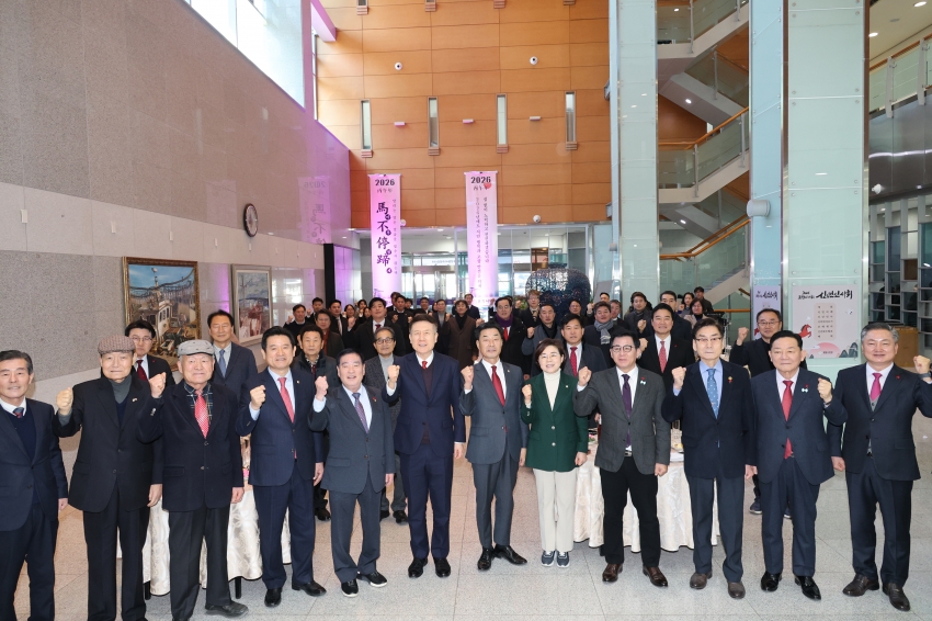 포항시의회는 병오년 새해를 맞아 2일 오전 시의회 1층 로비에서 신년인사회를 개최했습니다. 이날 신년인사회에는 김일만 의장을 비롯한 시의원, 이강덕 시장과 서재원 정무특보 등 시청 간부 공무원, 김정재‧이상휘 국회의원, 경북도의회 이동업·연규식·서석영·손희권·이칠구 도의원, 공원식 포항지역발전협의회장, 진병수·박태식·이상구·문명호 전 시의회 의장, 한명희 의정회장, 이두우·강한국·김경춘·이순동 전 의원을 비롯한 전직 시의원 등 총 100명이 참석했습니다. 의원들과 내빈들은 새해 덕담을 나누고 의정 철학을 담은 ‘마부정제(馬不停蹄 : 달리는 말은 말굽을 멈추지 않는다)’가 새겨진 시루떡을 자르며, 2026년 포항시의회 의정 운영 방향과 비전을 공유했습니다. 김일만 의장은 신년사 통해 “지난 한 해 우리는 쉽지 않은 여건 속에서도 K-스틸법 제정과 글로벌 AI 데이터센터 유치 등을 통해 도시의 산업 체질을 바꾸기 위한 기반을 다지며, 포항-영덕 고속도로 개통, 국제학교 유치 등 시민의 삶의 질 향상을 위해서도 지속적인 노력을 기울여 왔다”며, “병오년 새해에도 우리 앞에 직면한 과제를 하나하나 극복해 포항이 또 한 번의 도약을 할 수 있도록 지역 발전과 시민 행복을 위해 모든 열정과 노력을 다하겠다”며 각오를 다졌습니다. 한편, 시의회는 오는 1월 29일(목)부터 2월 6일(금)까지 새해 첫 임시회를 열고 본격적인 의정활동에 들어갈 예정입니다. |