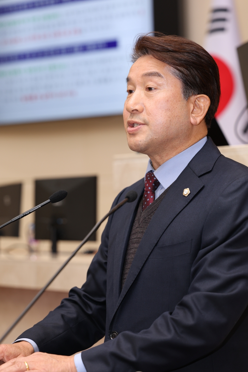조민성 의원은 소나무재선충병의 심각성을 언급하며 신속한 대응체계 마련, 재해 예방 중심으로 예산 구조 전환, 도시계획에 수종 전환 및 생태복원사업 포함 등 과학적이고 지속 가능한 산림관리체계로의 전환을 촉구했습니다.